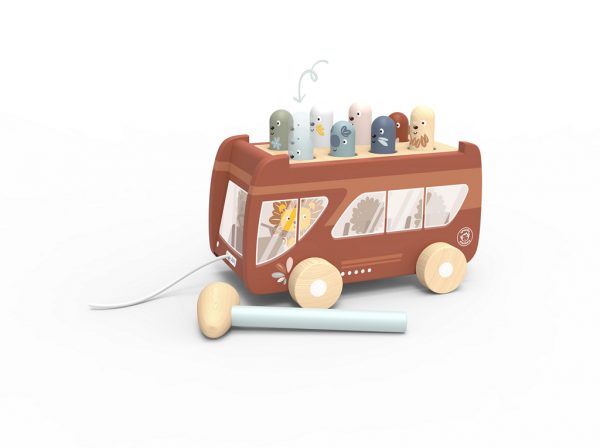 אוטובוס עץ מתוק כולל 8 דמויות עץ ופטיש למשחק הך פטיש . עוזר לפיתוח תיאום יד/עין. צעצוע עץ זה מעוצב עם קצוות מעוקלים בעדינות ומגיע בפלטת הצבעים המוצלחת שלנו.